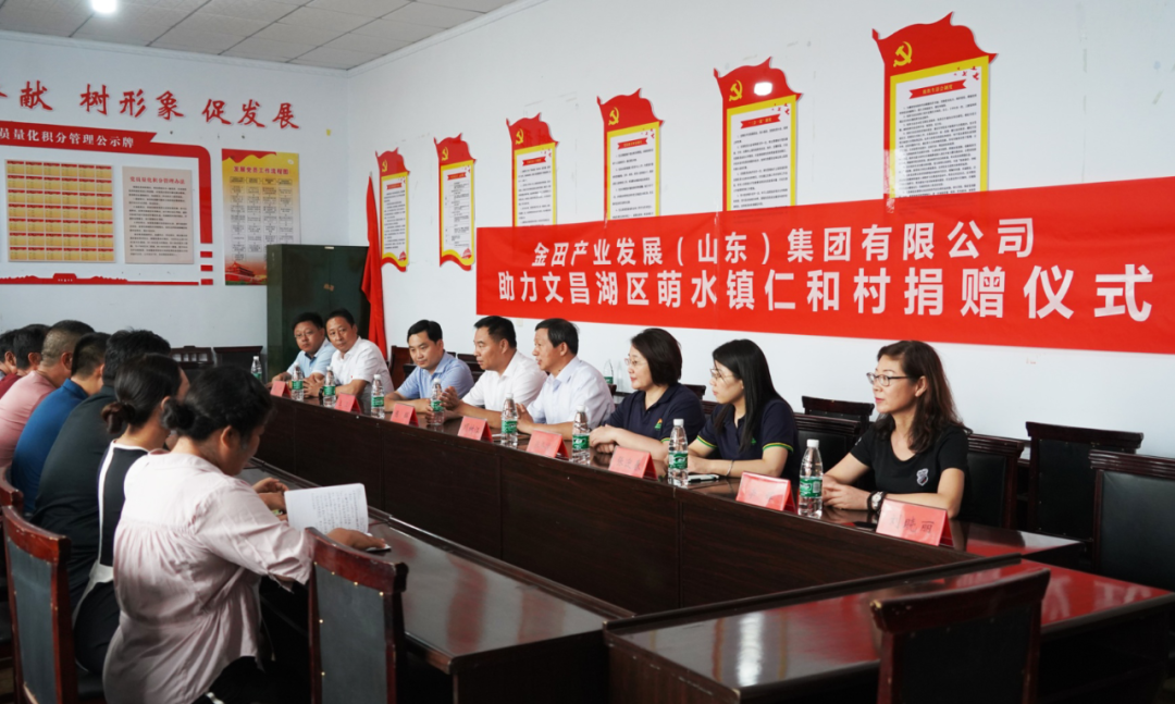 为继续助力精准扶贫脱贫,推动美丽乡村建设,金田集团于7月23日组织公司一行5人到文昌湖区萌水镇仁和村村委会进行了捐赠活动。文昌湖区工委委员陈辉、萌水镇党委副书记镇长王卫、文昌湖区农林局副局长周广、文昌湖土地发展有限公司总经理李晖以及仁和村两委成员出席了此次活动。