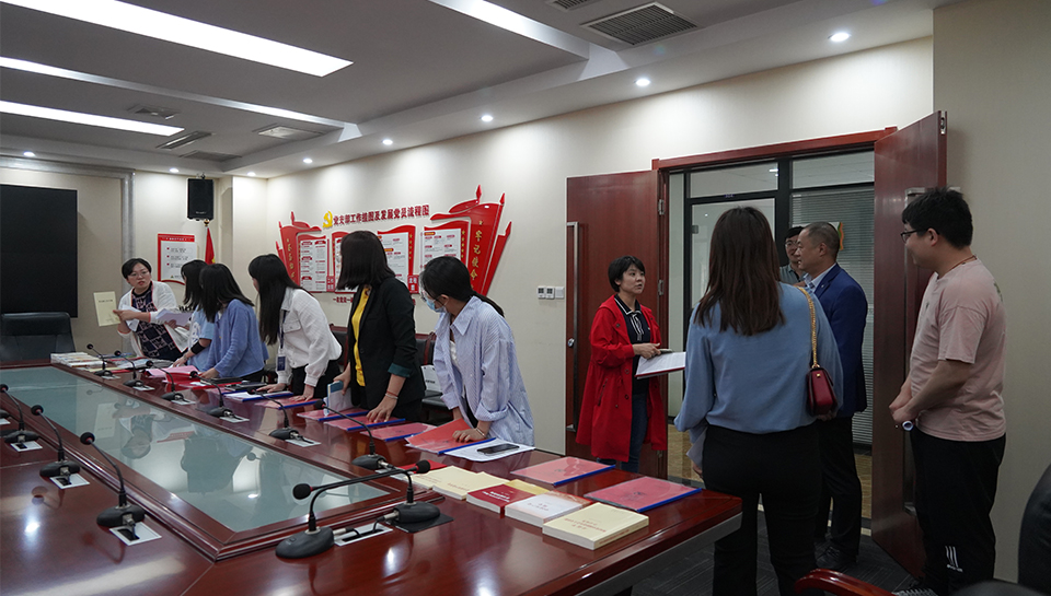 5月14日下午,唐冶街道政工科带领“两新”党组织党务工作人员来金田集团观摩学习支部档案管理工作。
